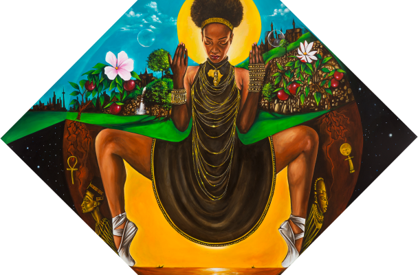 [Note from the Editor: Brilliant Toronto based artist Komi Olaf recently created a work he has entitled Eve on the Road to Zion as part of his Afro Collection. Alongside the incredible image, he also wrote a beautiful poem that accompanies it. I asked him if we could share his work on the blog and he agreed. Take a look at the model in the image and see if she looks familiar 😉 He also released a new video today called Ideas that you can see below.]